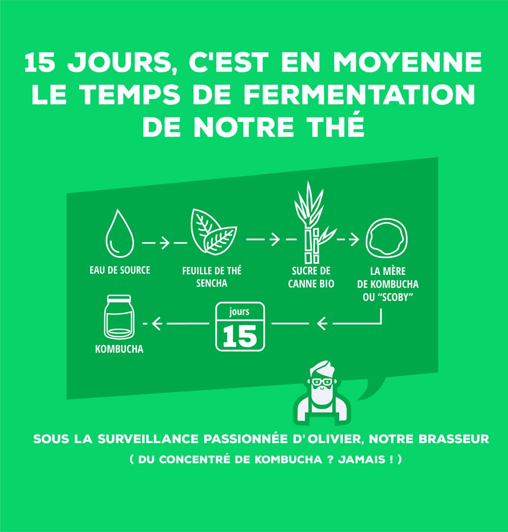Un thé vert fermenté pendant 10 à 15 jours sous la surveillance de nos brasseurs de thé. Une fermentation douce et naturelle, laissant place à une boisson gazeuse et faible en calories.
