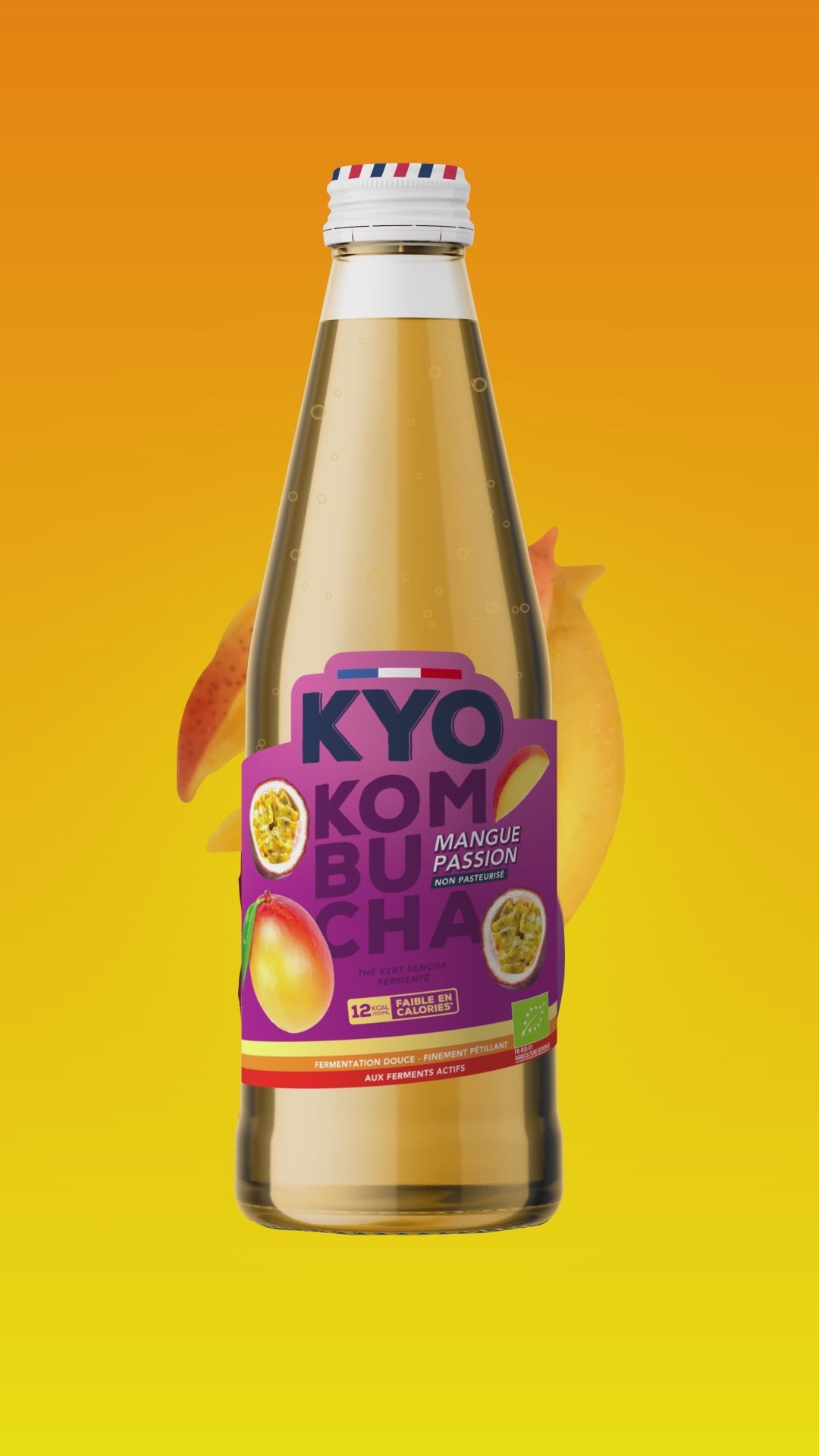 glucanes de levures (Saccharomyces cerevisiae))), sucre de canne blond non raffiné* 4,9%, thé vert Sencha* 0,5%], jus de fruit passion **2% purée de mangue **1%,arôme naturel de mangue**0,1% dioxyde de carbone. *Issu de l'agriculture biologique. Produit non pasteurisé.